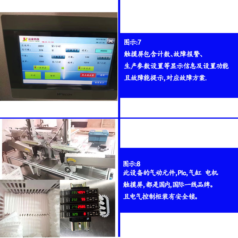 4.PLC+液晶觸摸屏控制操作,可在觸摸屏上輕松設置設備參數,產量和出錯信息清晰直觀;