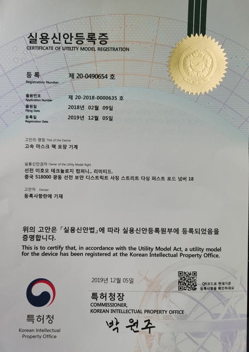 我司”面膜機(jī)韓國專利已經(jīng)下來,可喜可賀!
