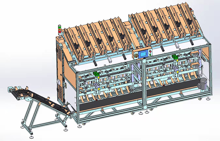9、根據所產生的面膜袋尺寸,通過機器調節手輪調節各通道寬度與高度(導槽寬度大于膜袋寬度兩側各1~2mm,高度根據膜袋封口位置7~8mm);
