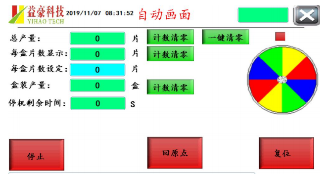 【盒裝產(chǎn)量】:以設(shè)定片數(shù)盒裝產(chǎn)量計(jì)數(shù)累加 1 計(jì)數(shù)。可以手動清零也可以一鍵清零
