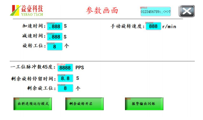 【剩余旋轉(zhuǎn)工位】:剩余旋轉(zhuǎn)開啟時有效,假如轉(zhuǎn)一個工位是 45 度剩余旋轉(zhuǎn)工位就是 3 個工